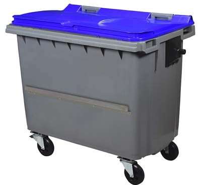 CONTENEUR 4 ROUES AVEC BARRE VENTRALE GRIS/BLEU 660L